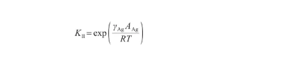 Ag-O系固-液轉變過程進行到一定限度時,系統達到平衡,自由能不再發生變化,且為最小。同時,固態、液態中的Ag原子濃度也不再發生變化,平衡系數KI表示為: