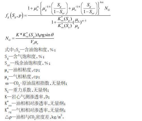 結合CO2黏度、原油黏度,推導出具有重力效應的帶傾角儲層氣體分流率方程為: