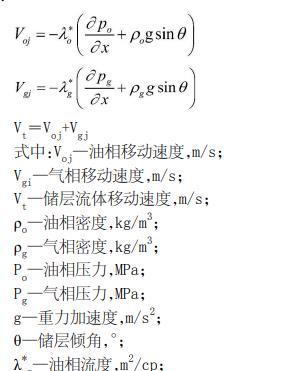 基于達西定律計算傾斜儲層中油相與氣相的運移速度的公式如下: