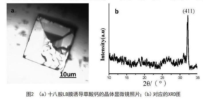 采用XRD表征草酸鈣的成分;收集在十八胺LB膜上的晶體和溶液自發生成的晶體,用金相顯微鏡表征。