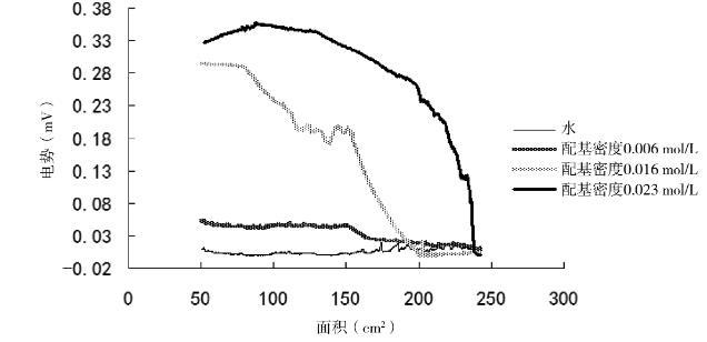 利用表面電勢分析儀研究了不同配基密度對LB膜表面電勢的影響,圖5為不同配基密度DEAE-瓊脂糖LB膜表面電勢圖像。結果表明隨著配基密度的增加其表面電勢不斷增加,LB膜性質越穩定。