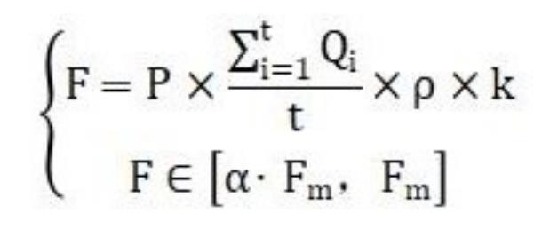 其中,F(xiàn)為高壓水流沖洗設(shè)備實際水流沖洗的沖擊力,Qi為高壓水流沖洗設(shè)備第i秒水流的流量,t為高壓水流沖洗設(shè)備預設(shè)的水流沖洗的時長,ρ為水的密度,k為預設(shè)定的閾值參數(shù),P為輸出功率可調(diào)的高壓水流沖洗設(shè)備的實際輸出功率,α為預設(shè)的抗壓閾值參數(shù)且其數(shù)值小于1,F(xiàn)m為新能源電池沖壓配件最大抗沖擊力值。