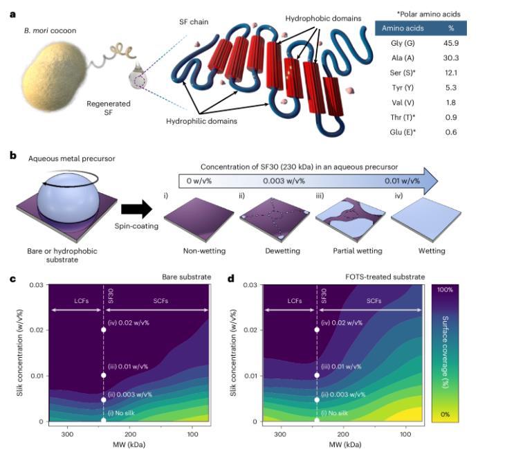 SF作為天然表面活性劑制造納米器件,大大改善疏水表面的水潤濕性