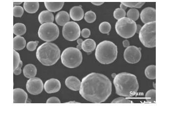 采用掃描電子顯微鏡對實施例1所制備的霧化粉體進行形貌表征,結果如圖1所示。從圖1可以看出,霧化粉體的粒徑較小,較多的粒徑在50μm左右,在霧化粉體表面粘合有金屬摻雜劑。