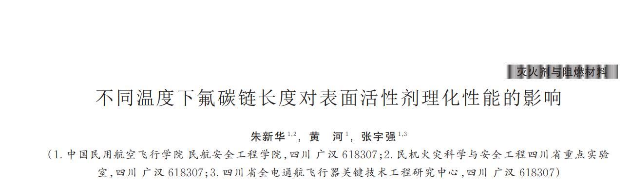 然而低溫環境可能影響短碳鏈表面活性劑的性能,特別是在機場消防應用領域。我國機場分布跨度大,冬夏季消防水源溫度差異顯著(0~40℃)。因而,研究不同溫度下氟碳鏈長度對表面活性劑性能的影響具有重要意義。筆者在0~40℃溫度下,研究四、六、八氟碳鏈表面活性劑(分別記為FC4、FC6、FC8)的表面活性、發泡性能、鋪展性能等主要理化性能,為氟碳表面活性劑在環保型水成膜泡沫滅火劑中的應用提供參考。