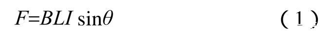 由式(1)可知,F(xiàn)的大小與B、L、I及sinθ均成正比,對于設(shè)計(jì)好的傳感器,其感應(yīng)線圈的規(guī)格尺寸已固定,B、L可視為常數(shù),而θ為90°,故sinθ=1,因此,F(xiàn)與I成正比關(guān)系。