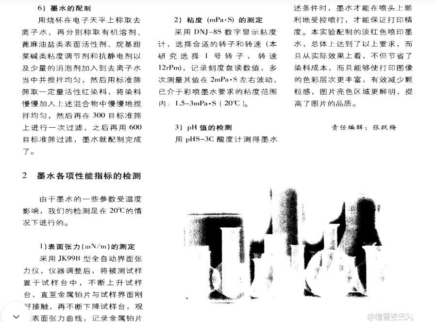 經(jīng)過多次測量,其表面張力儀均在35mN/m左右波動(dòng),已介于彩噴墨水要求的表面張力范圍30-50mN/m(20攝氏度)。