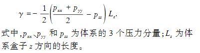 每個模型都經(jīng)過100 ns的MD模擬,保證油水界面充分達(dá)到平衡狀態(tài),油水界面張力的計(jì)算采用50 ns的數(shù)據(jù),通過3次獨(dú)立模擬獲得界面張力數(shù)值。本文中對界面張力(IFT)的計(jì)算方法選用Gibbs界面張力計(jì)算法,模型中油水界面位于XY平面內(nèi),界面張力計(jì)算公式為