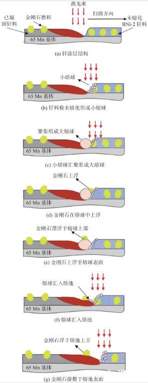 2.2激光釬涂金剛石/釬料粉末熔合鋪展過(guò)程