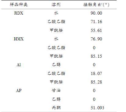 表1推進劑組分和不同溶劑之間的接觸角