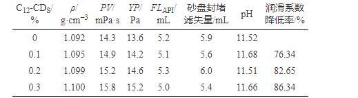 4.C12-CDS與現(xiàn)場用無固相硅酸鹽鉆井液具有良好的配伍性能,可提高其潤滑性能。