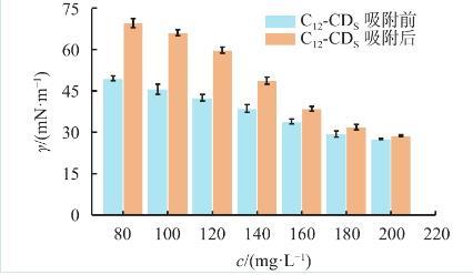 圖4 C12-CDS在石英砂表面吸附前后的表面張力值