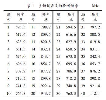 表1多頻超聲波的檢測頻率kHz