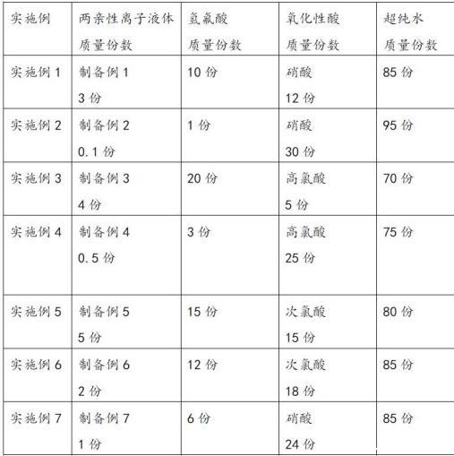 分別稱取各自用量的各個組分,然后將超純水、氫氟酸、氧化性酸、兩親性離子液體依次加入容器內,充分攪拌溶解,最后過濾,即得所述多晶硅蝕刻液。