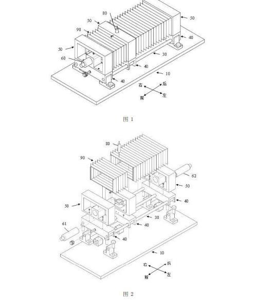 遮光罩90的上壁板、下壁板、左壁板和右壁板都為可伸縮的波紋板,使得當?shù)谌靶渭?3沿著第一絲桿21前后移動時,遮光罩90能夠隨著第三窗形件53伸長或者縮短。
