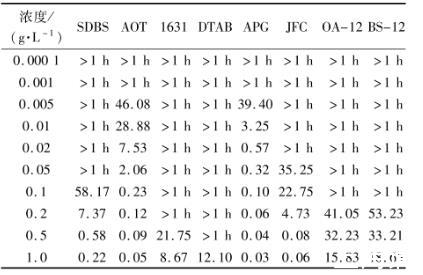 表4煤塵在表面活性劑溶液中的沉降時間