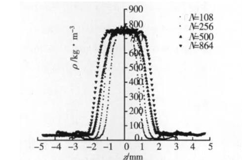 圖9水分子數(shù)對(duì)密度分布的影響
