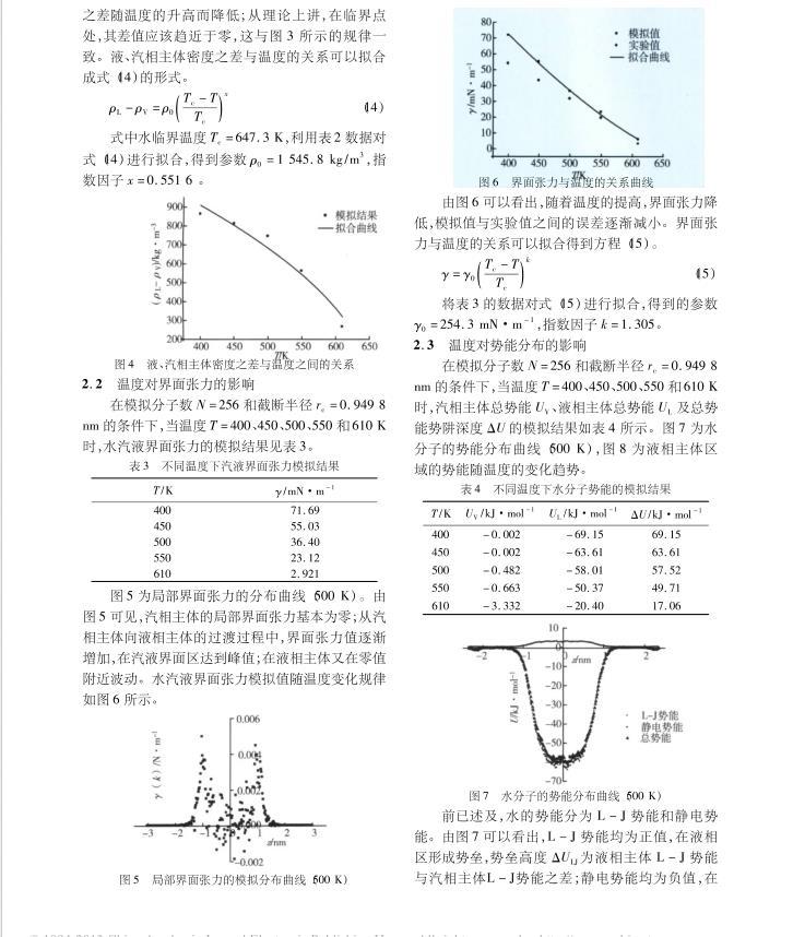 溫度、截?cái)喟霃健⒛M分子數(shù)對(duì)水汽液界面特性的影響規(guī)律(二)