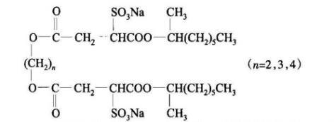 乙二醇雙子琥珀酸二仲辛酯磺酸鈉(GSS271)、1,3-丙二醇雙子琥珀酸二仲辛酯磺酸鈉(GSS371)、1,4-丁二醇雙子琥珀酸二仲辛酯磺酸鈉(GSS471)(結(jié)構(gòu)式如下,實(shí)驗(yàn)室自制。提純后測定,表面張力曲線無最低點(diǎn),說明不含高活性雜質(zhì)),實(shí)驗(yàn)用水均為二次去離子水經(jīng)亞沸重蒸。