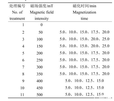 生物磁學(xué)(Biomagnetism)是生物學(xué)和磁學(xué)相互交叉的一門新型學(xué)科,主要探究生物磁效應(yīng)及磁現(xiàn)象、外磁場對(duì)生物體的影響。生物磁學(xué)方向的研究已吸引眾多領(lǐng)域相關(guān)專家的高度關(guān)注。生物磁學(xué)目前已經(jīng)普遍應(yīng)用于環(huán)境保護(hù)工程、農(nóng)業(yè)、林業(yè)等許多領(lǐng)域,且已取得巨大的收益,其中,在農(nóng)、林業(yè)領(lǐng)域采用最多的為磁化水。磁化水是指以一定的流速通過磁場,受磁力線切割使自身的理化性質(zhì)發(fā)生變化的水或水溶液。