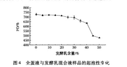 圖4全蛋液與發(fā)酵乳混合液樣品的起泡性變化