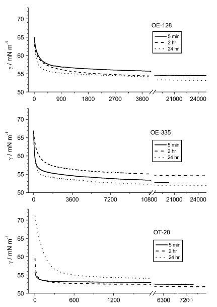 圖 1 1:1 提取物的動態表面張力曲線。