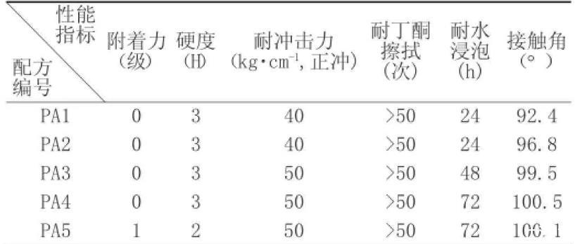 在制得不同配方的涂料之后(PA1-PA5),我們進一步制備了相應的水性氟丙樹脂涂料涂膜,其性能指標見表3。