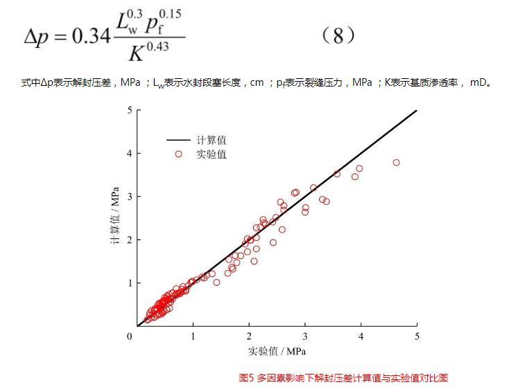 圖5多因素影響下解封壓差計算值與實驗值對比圖