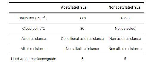 表3乙酰化SLs和去乙酰化SLs的溶解性能和抗酸抗堿性