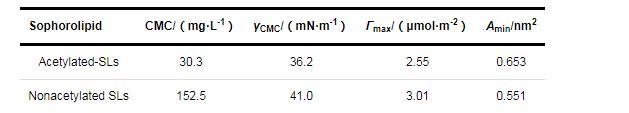 表4乙酰化SLs和去乙酰化SLs在氣液界面上的吸附參數