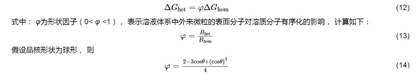 根據均相成核和非均相成核理論,在非均相成核條件下形成臨界晶核所需自由能的變化(ΔGhet)與均相成核條件下形成臨界晶核所需自由能的變化(ΔGhom)間的關系為