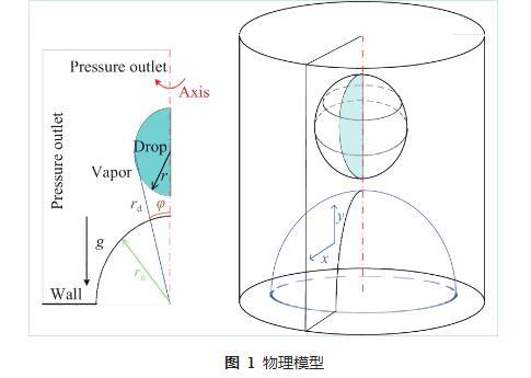 雖然,很多學者對Leidenfrost現象進行了一定研究,但是大部分研究成果聚焦于高溫平面上的液滴動力學與傳熱特性,而非平面上Leidenfrost現象的研究非常有限。但是,液滴撞擊高溫曲面廣泛存在于電子工程、機械工程、動力工程、化學工程等領域。如液滴撞擊高溫球面,常見于流化催化裂化和流化焦化等工藝,這一過程影響著多種過程系統的性能,尤其是對于生產更有價值的汽車燃料具有重要意義。鑒于此,本文進一步探究液滴與高溫球面撞擊過程中液滴的Leidenfrost現象,采用數值模擬方法進行研究,使用Fluent軟件構建了二維軸對稱數值模型,采用VOF模型及Lee模型,分析液滴撞擊高溫球面的動力學特性與傳熱特性,探討Leidenfrost現象的機理及各因素的影響規律。