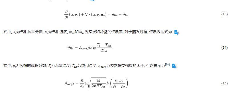 和為蒸發和冷凝的傳質率。對于蒸發過程,傳質表達式為