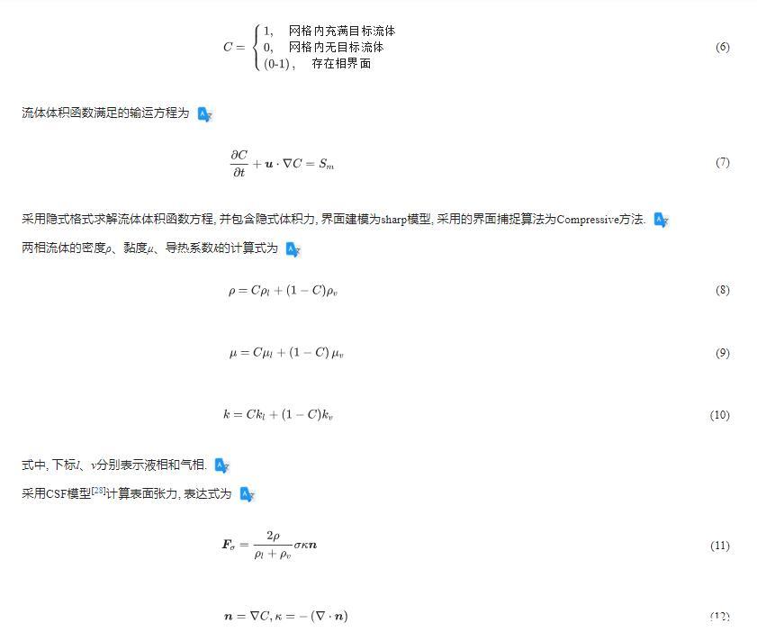采用隱式格式求解流體體積函數方程,并包含隱式體積力,界面建模為sharp模型,采用的界面捕捉算法為Compressive方法。