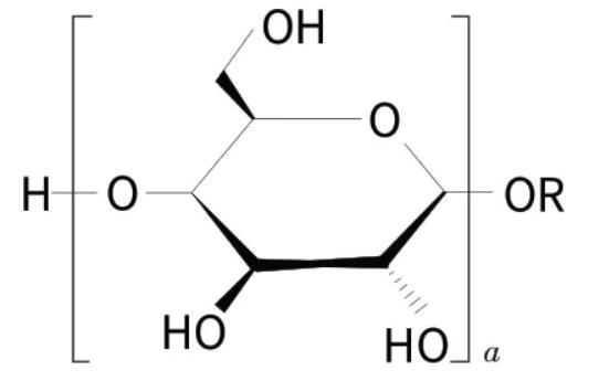 烷基糖苷(APG,結(jié)構(gòu)式如下,其中a是平均聚合度)是一類可生物降解的天然非離子表面活性劑,被國際公認為“綠色”功能表面活性劑。烷基糖苷具有優(yōu)良的配伍性能,起泡性好(泡沫豐富細膩),耐強堿和電解質(zhì),有良好的增稠能力,與皮膚相容性好,無毒,刺激性極低。