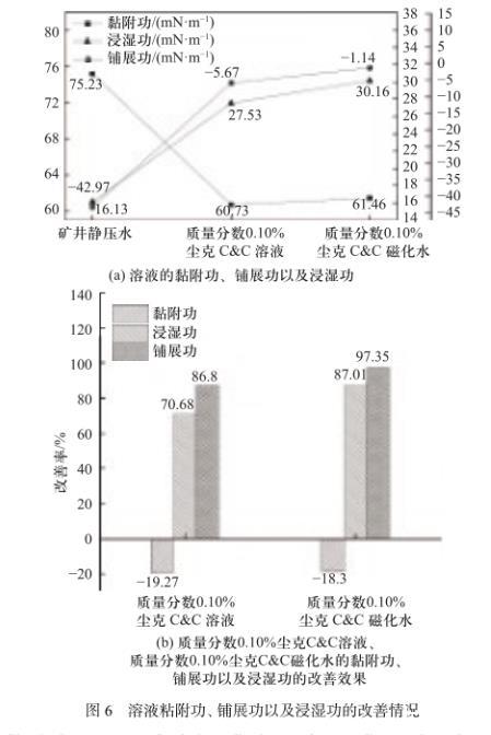 圖6溶液粘附功、鋪展功以及浸濕功的改善情況