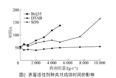 圖2表面活性劑種類(lèi)對(duì)成餅時(shí)間的影響