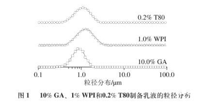圖1 10%GA、1%WPI和0.2%T80制備乳液的粒徑分布