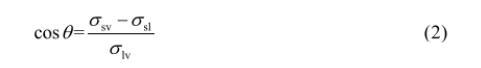 潤濕三相線交匯處的固-液界面張力(σsl)、液-氣界面張力(σlv)及固-氣界面張力(σsv)可決定潤濕性的好壞,當(dāng)潤濕過程達(dá)到平衡時(shí)即可得到Y(jié)oung’s方程。
