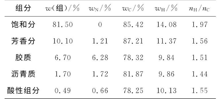 1.2.2原油組分元素分析用ElementarVario EL(Germany)元素分析儀器測定原油中各組分元素的質(zhì)量分數(shù),結(jié)果見表2。