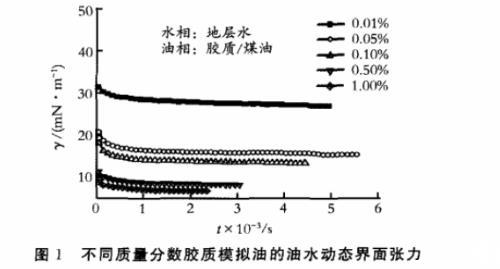 圖1不同質(zhì)量分數(shù)膠質(zhì)模擬油的油水動態(tài)界面張力