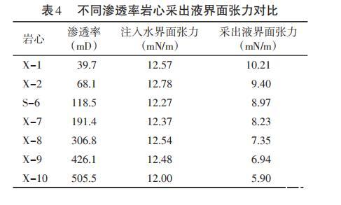 (1)實驗方法采用芬蘭Kibron dIFT雙通道動態(tài)界面張力儀檢測不同滲透率巖心的二次水驅(qū)采出液和原油的界面張力。