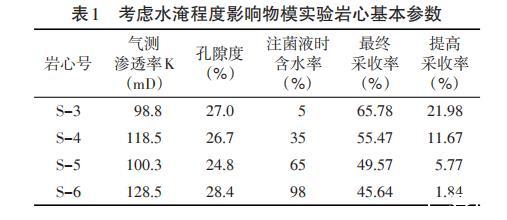 2.3.2評價含水率對微生物驅(qū)油的影響
