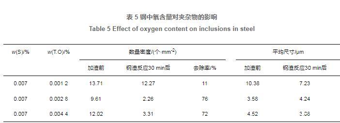 表4鋼中硫含量對(duì)氧化物夾雜的影響
