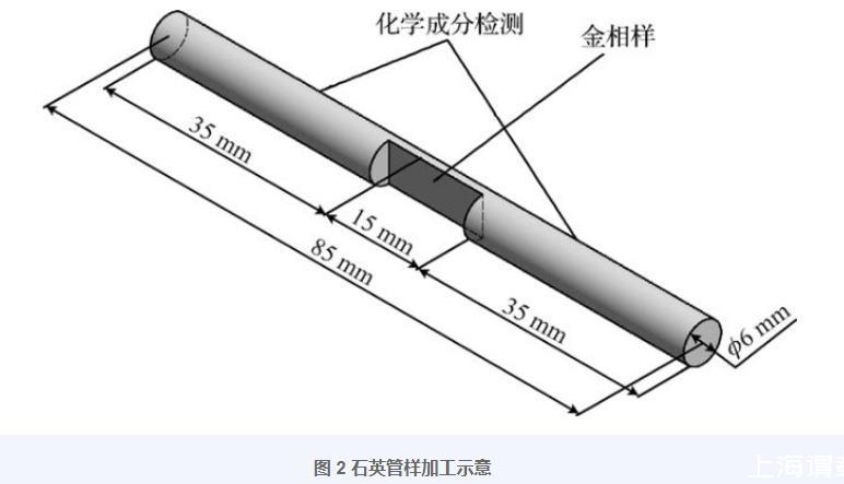 每個(gè)石英管樣長(zhǎng)度約為85 mm,直徑約為6 mm,試樣加工如圖2所示。取中間位置制備金相樣;取兩頭中光潔度較好、致密度較高的一頭進(jìn)行表面磨光,車(chē)取直徑為4 mm的氧氮?dú)怏w棒;最終余料取屑用于分析鋼中剩余主要元素的質(zhì)量分?jǐn)?shù)。金相樣經(jīng)過(guò)線切割、精細(xì)磨拋后,用ASPEX掃描電鏡檢測(cè)試樣,并對(duì)掃描結(jié)果進(jìn)行分析,統(tǒng)計(jì)每個(gè)試樣中氧化物夾雜的數(shù)量密度和平均尺寸。