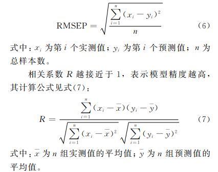 注:RMSEP-均方根預測誤差;R-相關(guān)系數(shù)