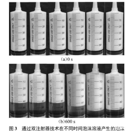 圖3通過雙注射器技術在不同時間泡沫溶液產生的泡沫