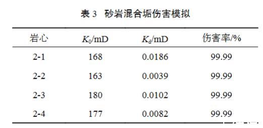 表3砂巖混合垢傷害模擬