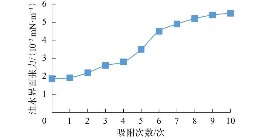 圖4吸附次數(shù)對油水界面張力的影響