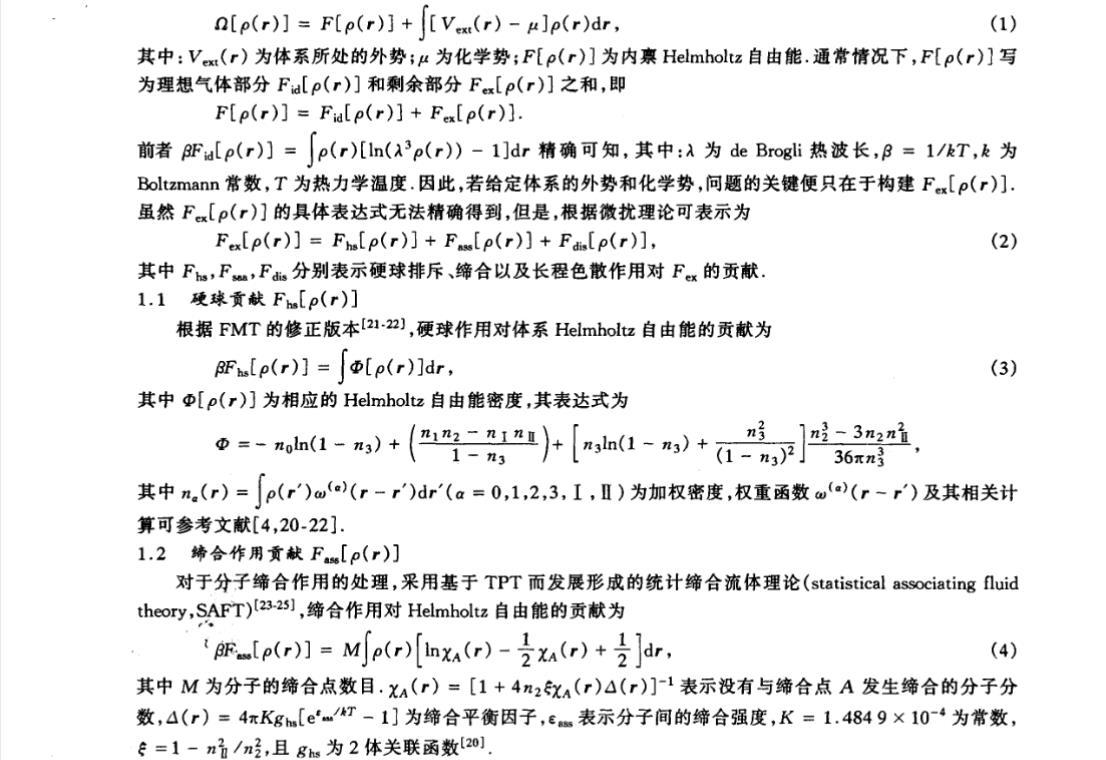 1.2 締合作用貢獻 Fas[ρ(r)]